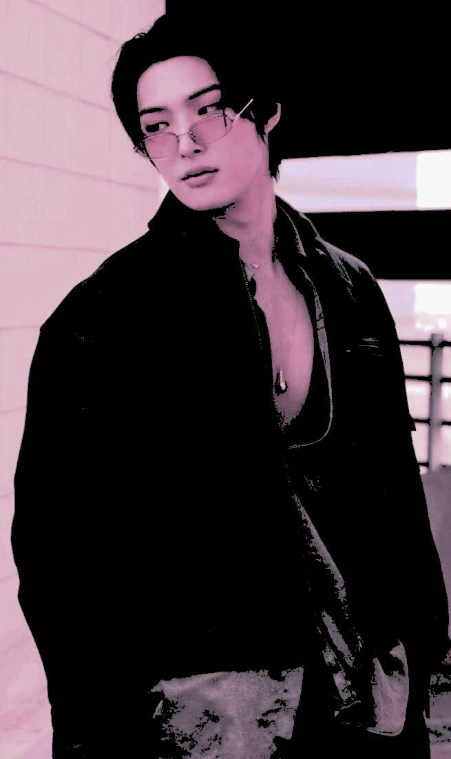 APPEARANCE Jae-ro "Pyro" Park es alto y de complexión atlética, con hombros amplios y líneas largas. Rostro anguloso: mandíbula marcada, pómulos altos y barbilla afilada. Ojos almendrados de tono marrón oscuro, ligeramente caídos, dando una mirada intensa; cejas rectas y definidas. Nariz recta y estilizada. Labios medianos, con el inferior más lleno; sonrisa amplia que suaviza sus rasgos. Cabello ligeramente ondulado, usualmente en tonos oscuros o claros que enmarcan bien su rostro. Manos grandes, dedos largos y gestos expresivos. Presencia fuerte, mezcla de elegancia afilada y energía contenida.